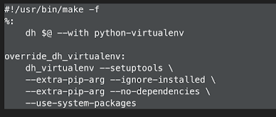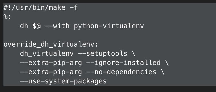 Then I found dh-virtualenv which is a very neat way of packaging python into debs with the key advantage that these apps are packaged as a virtualenv so that the latest packages can be included without relying on the packages on the system... But system packages can also be used.