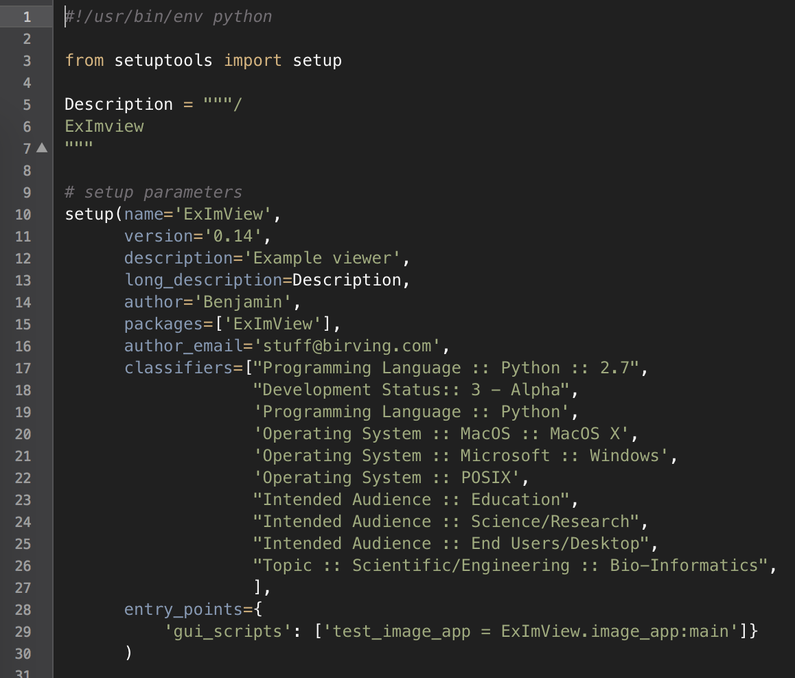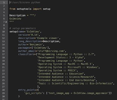 A standard setup.py file is also used. At the bottom of the script an entry point is added, which creates an executable in the virtualenv that is called by the script copied to /usr/bin. This is the best way I could think to link it but there might be better options.